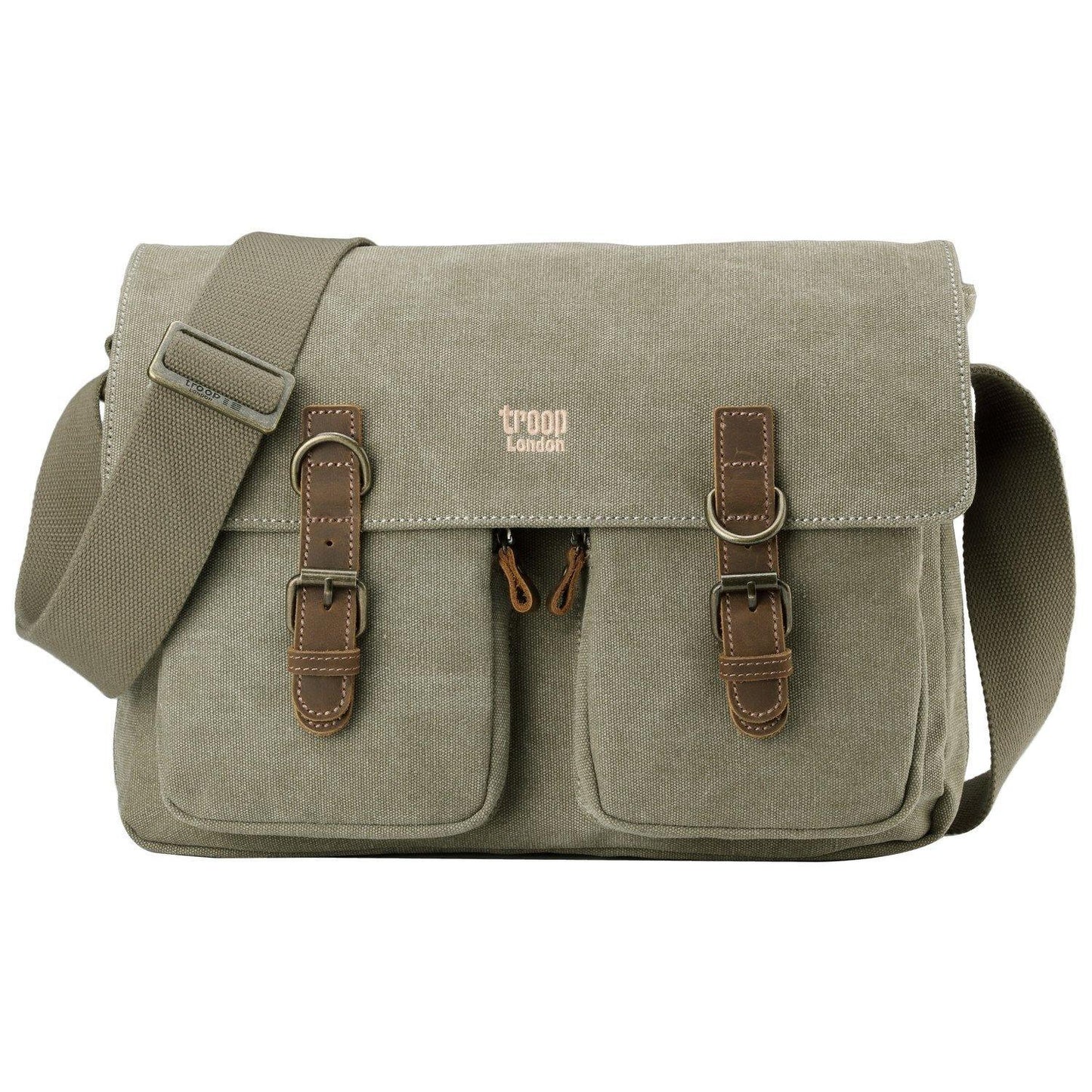 This Troop bag is made of super strong canvas with genuine Italian leather trim and detailed zip pullers. Lined in PU backed cotton.
