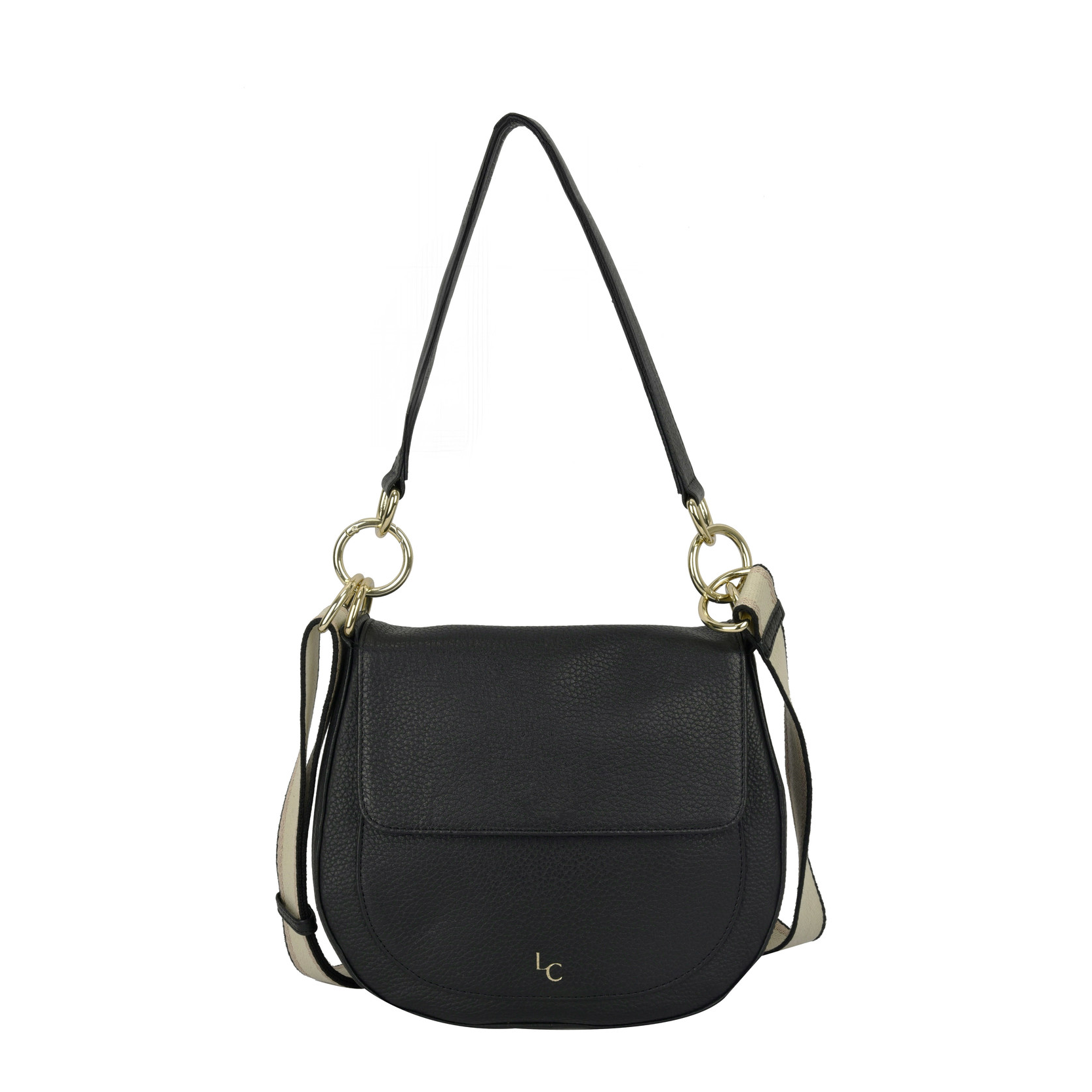 Genuine leather crossbody shoulder bag with leather-shoulder and webbed-crossbody straps.