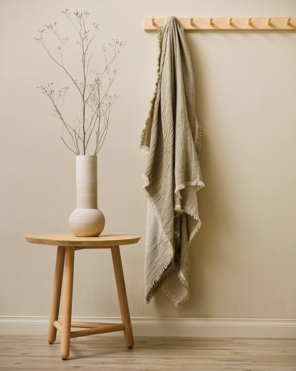 Craft a minimal, rustic-inspired interior with the gentle sage tone of this cotton-blend throw. Woven in a two-tone, reversible design, the open, muslin-style weave makes this throw beautifully light and breathable. Finished with softly frayed edge detailing, the Papyrus is perfect for inviting gentle texture to your living and bedroom areas. Available in two sizes.